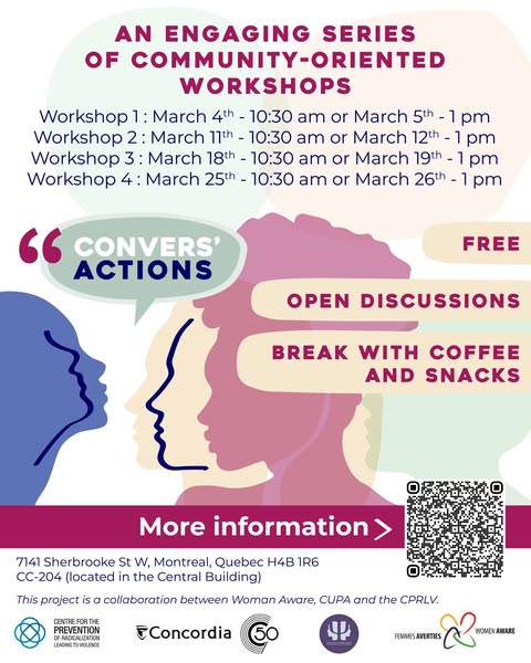 搜索关键词 community workshops, safer spaces, community action, winter sessions, Women Aware, Concordia, Psychology Association, free coffee, social events, community building优势 Focus on community building,Collaboration with reputable organizations,Free snacks and coffee,Promotes safer spaces