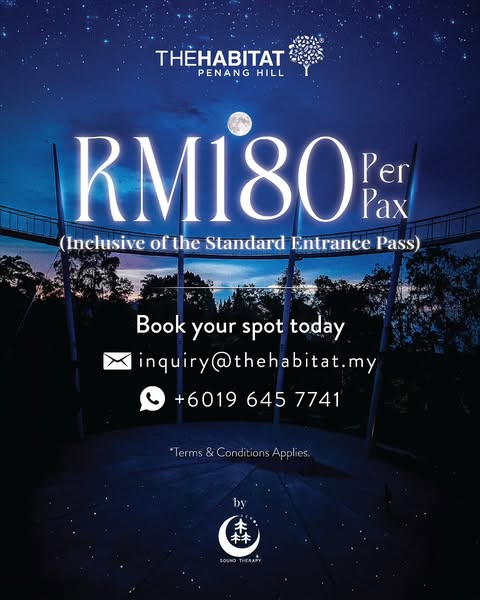 As 2024 draws to a close, join us for The Habitat Penang Hill’s newly introduced 𝐅𝐔𝐋𝐋 𝐌𝐎𝐎𝐍 𝐒𝐎𝐔𝐍𝐃 𝐁𝐀𝐓𝐇 experience. Immerse yourself under the full moon in the heart of the UNESCO Penang Hill Biosphere Reserve for an evening of 𝒓𝒆𝒇𝒍𝒆𝒄𝒕𝒊𝒐𝒏, 𝒓𝒆𝒍𝒆𝒂𝒔𝒆, 𝒂𝒏𝒅 𝒓𝒆𝒏𝒆𝒘𝒂𝒍. Guided by expert facilitators, embrace the soothing sounds of Tibetan singing bowls, wind chimes, and rain drums as you set intentions for the year ahead and let go of past energies. Surrounded by the ancient rainforest, let nature and the full moon’s energy bring you peace and inspiration for the new year. 🌿