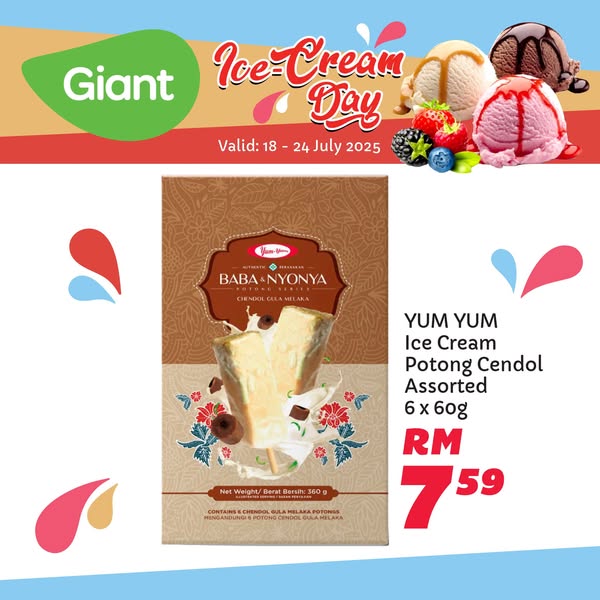 搜索关键词 Ice Cream Day, Malaysian Ice Cream, Ice Cream Potong, Giant Malaysia, Ice Cream Promotions, Frozen Dessert Sale, Best Ice Cream Prices, July 2025, GiantMY Promotions优势 Wide selection of ice cream,Competitive pricing,Promotional offers