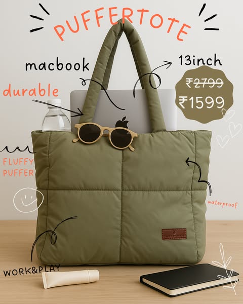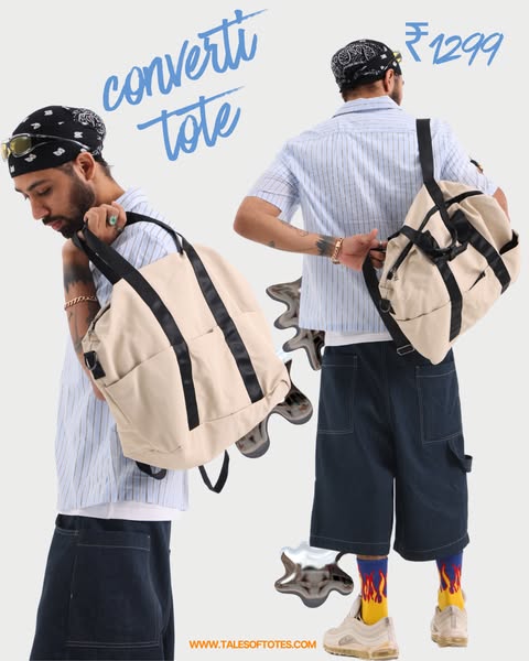 Now at ₹1699! Trendy streetwear tote bags in bold, aesthetic colors. was Unisex. Spacious. Waterproof. 💥 COD available across India,Made from tough, high-quality polyester for long-lasting durability Waterproof material keeps your belongings protected in all conditions Spacious interior fits a 14-inch laptop and daily essentials with ease Includes an inner pocket for better organization Comes with a branded hang tag for a premium touch Available in 4 vibrant shades to complement any outfit Care Instructions: Wipe clean with a damp cloth; avoid machine wash or harsh chemicals SIZE: 16 inch height & 17.5 inch bottom width.
