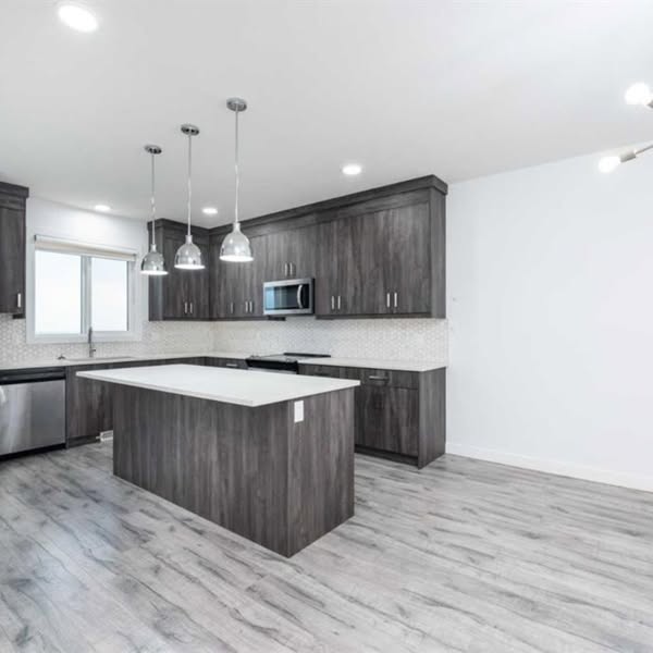 This brand-new home features a bright, open-concept layout, a gourmet kitchen, and a detached garage for extra storage!