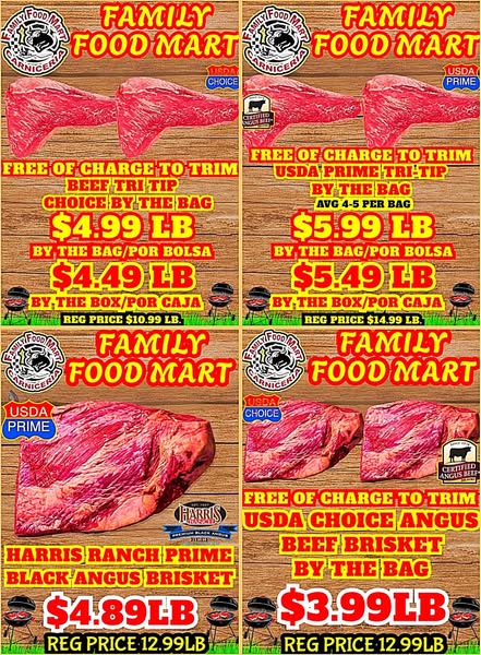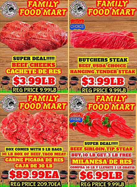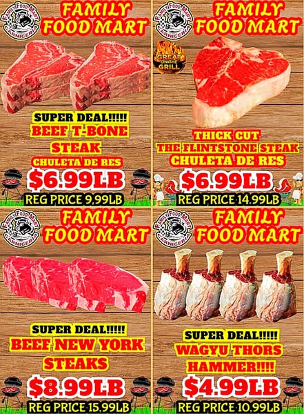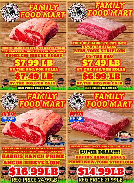 搜索关键词 Family Food Mart, Meat Sale, Black Angus Steaks, Free Delivery, Meat Combos, Wheel of Meats, Grocery Deals, Food Mart Sale, Buttonwillow CA, Local Butcher优势 Free Black Angus Fillet Mignon Steaks with meat purchase,Wheel Of Meats Spin and win meat,Fast & Free Delivery,Mix and Match Meat Combos