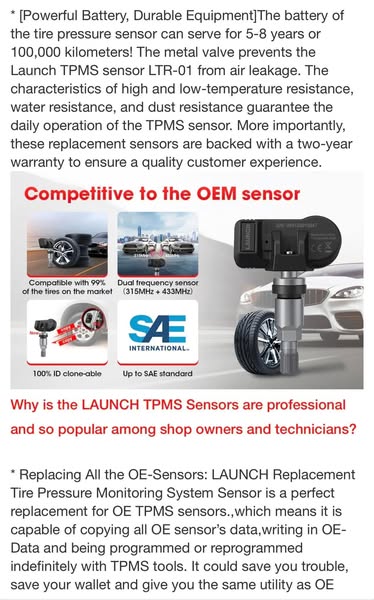 搜索关键词 TPMS sensor valve, car tire pressure, auto parts Phnom Penh, original launch sensor, Toyota sensor, pressure sensor, car sensor, tire sensor, cambodia sensor, Khmer sensor优势 High quality,Affordable price,8-month warranty,Original Launch SET SENSOR,Available for all car series