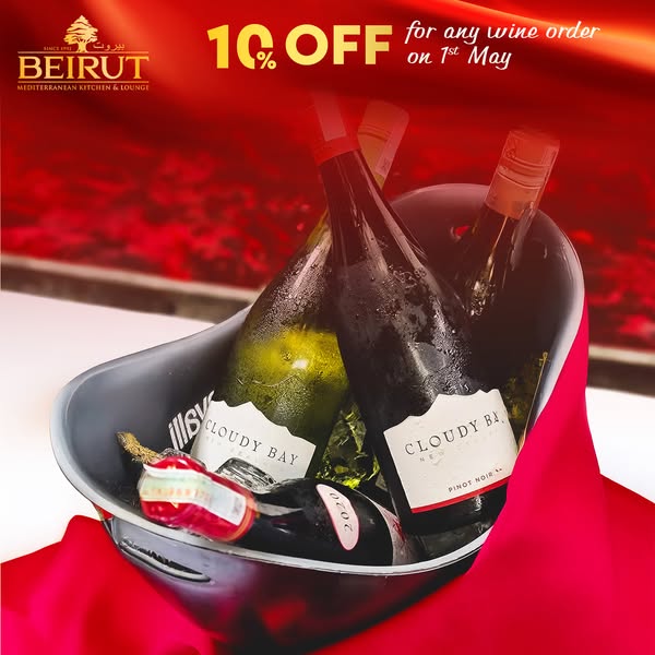 🍷 Ngày 01/05: Giảm 10% cho tất cả các chai rượu vang – nâng ly cùng bạn bè và người thân trong không gian đậm chất Trung Đông!