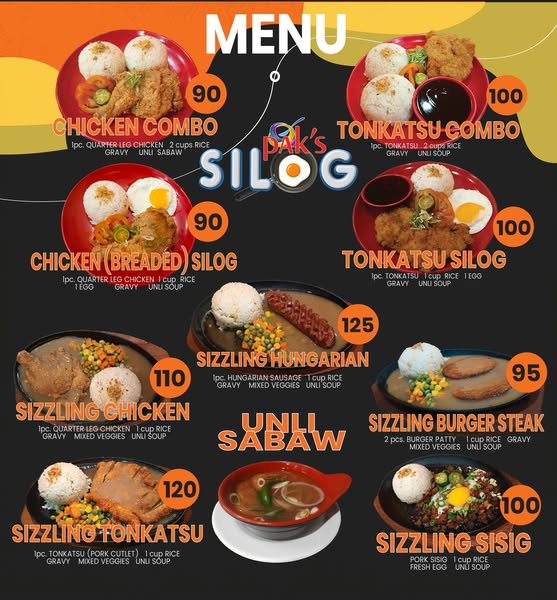 Craving a delicious meal? Come over to Pak's SILOG and treat yourself to our signature silog meals, toppings, irresistible combos, and sizzling platters! Whether you're craving something hearty for breakfast, a satisfying combo for lunch, or a sizzling treat for dinner, we’ve got you covered and the best part—UNLI SABAW! That's right, enjoy unlimited servings of our hearty soup with every meal. See you!