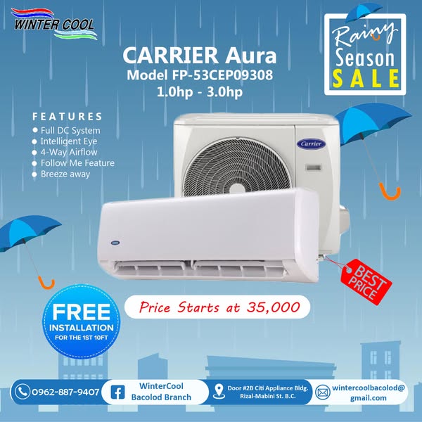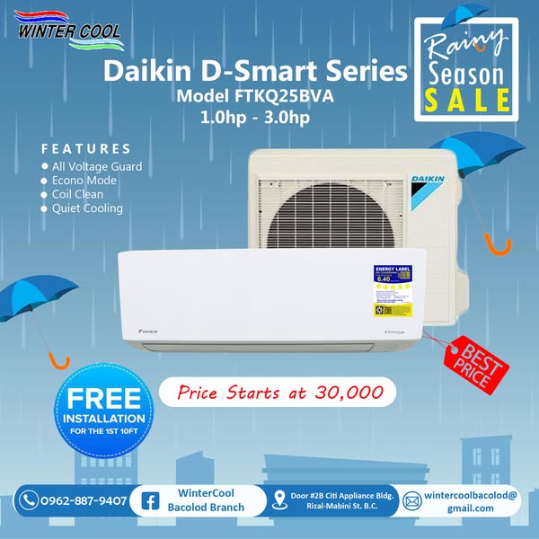 搜索关键词 Aircon sale, Rainy season promo, Bacolod aircon, Free installation, Home cooling, Air conditioning unit, Discounted aircon, Quality aircon brands, Fast aircon service, Reliable aircon technicians优势 Big Discounts,Free Installation,Fast Service,Reliable Technicians,Quality Brands,Free Delivery,Free Site Survey