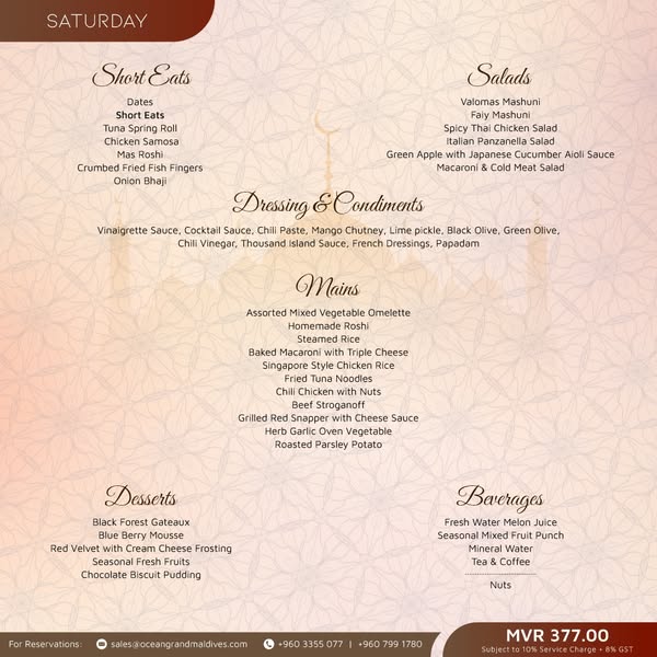 For Reservations, call +960 799 1780 | +960 799 5066 | +960 3355 077