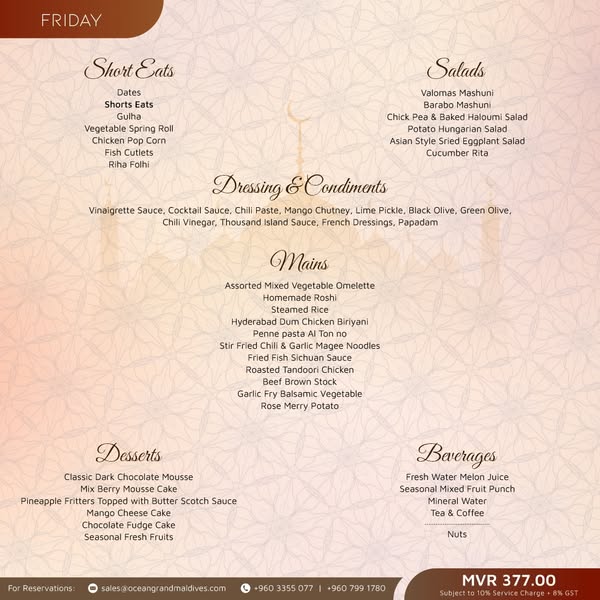 For Reservations, call +960 799 1780 | +960 3355 077