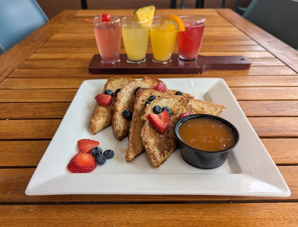 Golden-brown and topped with fresh berries, and caramel-our French Toast is the comfort food you didn’t know you needed.
