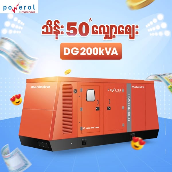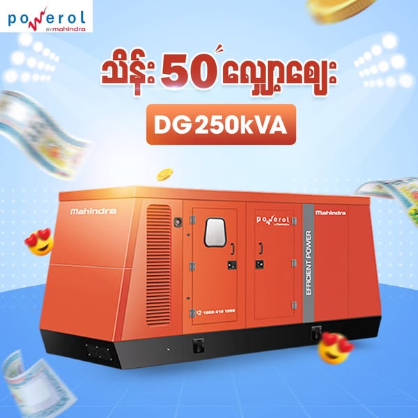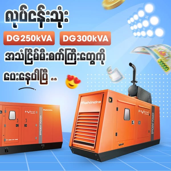 搜索关键词 Mahindra Generator, Generator Cash Back, Diesel Generator, Silent Generator, Industrial Generator, Myanmar Generator, Power Generator, kVA Generator, Generator for Business, Generator for Home优势 Large Cash Back Offer (50 Lakhs),Wide Range of kVA Options (DG160KVA, DG200KVA, DG250KVA, DG300KVA, DG400KVA),Suitable for Home, Business, and Industrial Use,Quality Assurance
