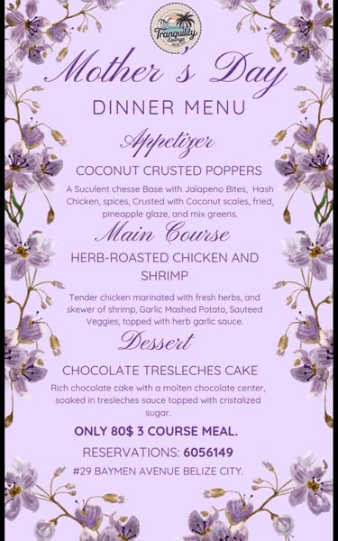 搜索关键词 Mother's Day Special, Dinner Belize City, The Pourit Lounge, Saxophone Performance, Karaoke Margarita, Family Dinner, Belize Restaurant, Mother's Day Celebration, Live Music Belize, Baymen Avenue Restaurant优势 Delicious special dinner,Saxophone performance,Karaoke entertainment with complimentary Margarita for first 5 mothers,Complimentary shots for children singing for their mothers