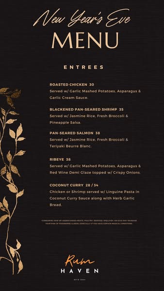 🎉 Ring in the New Year with us at Rum Haven! 🍹✨ Make your reservation now & celebrate with delicious dishes, a complimentary glass of champagne, refreshing drinks, and unforgettable moments.