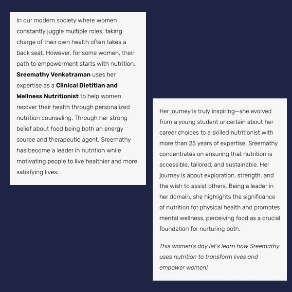 搜索关键词 India Nutritionists, Best Dieticians, Women's Health, Healthcare Solutions, Nutrition Consulting, Mithaahara Services, Heal with Food, Eat to Live, Wellness Programs, Healthcare Hub优势 Highlighting top professionals,Promoting Women's Day,Focus on health and wellness