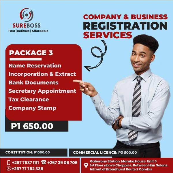 搜索关键词 company registration, business setup, botswana incorporation, new business, starting a company, company secretary, tax clearance, business documents, gaborone registration, omega house office优势 Comprehensive service packages,Clear pricing for different packages,Includes essential documents and appointments