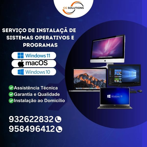Fazemos Instalação de Sistemas Operativos Windows e MacOs E Softwares diversos