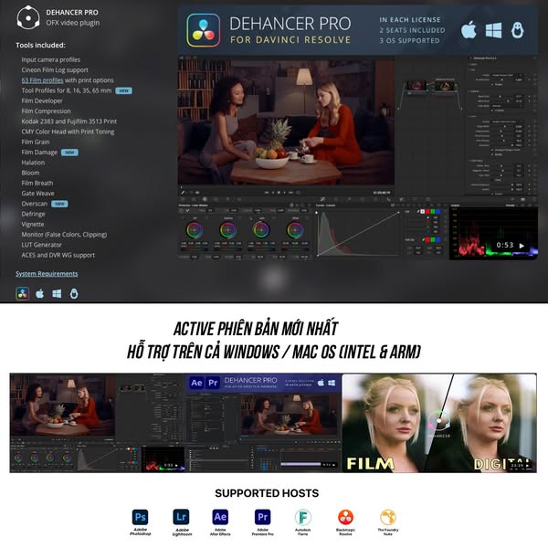Nhận thấy nhu cầu của các bạn học sinh, sinh viên học đồ hoạ rất nhiều nhưng để có cơ hội sử dụng những plugin nổi tiếng như Keentools, BorisFX, Redgiant, Digital Anarchy, RevisionFX, Dehancer.... thì phải tốn 1 khoảng chi phí rất là lớn, hôm nay mình nhận Active các Plugin bên dưới và những phần mềm đồ hoạ trên cả hai nền tảng Windows và Mac os ( Intel & ARM) với giá vô cùng Sinh Viên.
