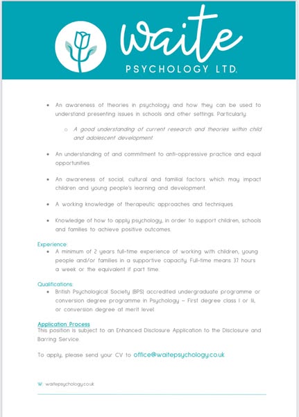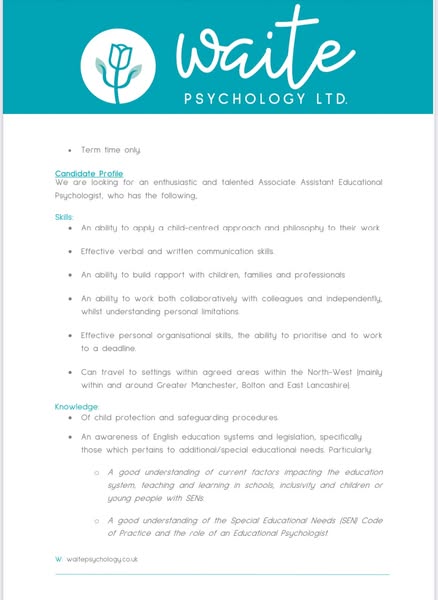 Please find our Assistant Educational Psychologist Advert attached below 🤗. I promise to post the Person Specification next.
