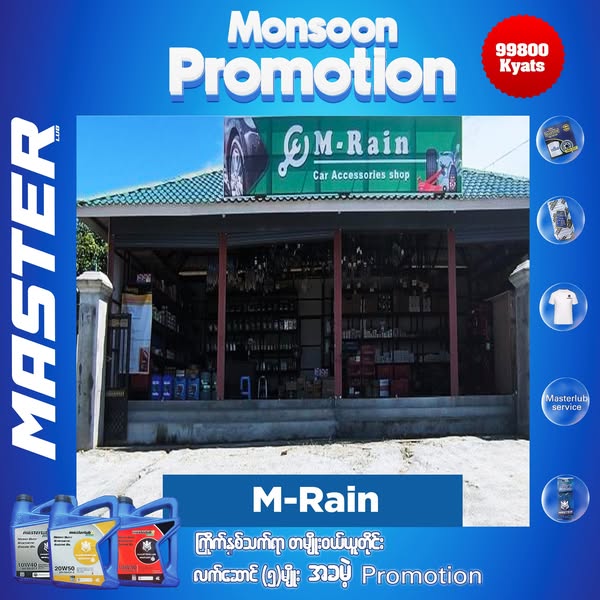 搜索关键词 master lub engine oil, monsoon promotion, free oil filter, free air filter, free t-shirt, naypyidaw available, automotive oil sale, limited time offer, Myanmar promotion, engine oil change优势 Includes 5 free items (oil filter, air filter, T-shirt, perfume, free oil change),Available in Naypyidaw,Limited time promotion