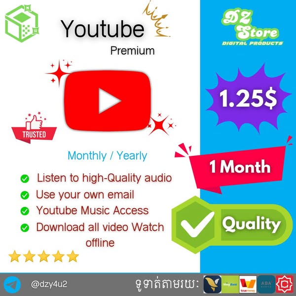 🟢 លោកអ្នកអាចសាកល្បងមកជាវ Premium Account ដែលមានតម្លៃទាបជាងការទិញផ្ទាល់ឆ្ងាយពីក្នុងកម្មវិធី។
