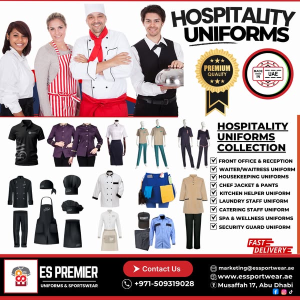 From Michelin-star restaurants to beachfront resorts, we craft uniforms that elevate your service standards. Stain-resistant chef coats, elegant hostess gowns, and durable server aprons - all customizable to reflect your property's unique style." 📌 Key Features: ✓ 30+ hospitality fabric options ✓ Anti-odor & sweat-wicking technology ✓ Complimentary uniform style guide ✓ 10-14 day production time.