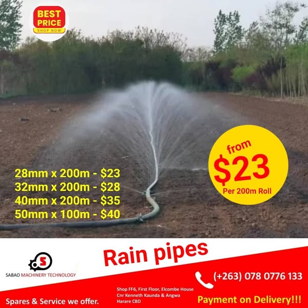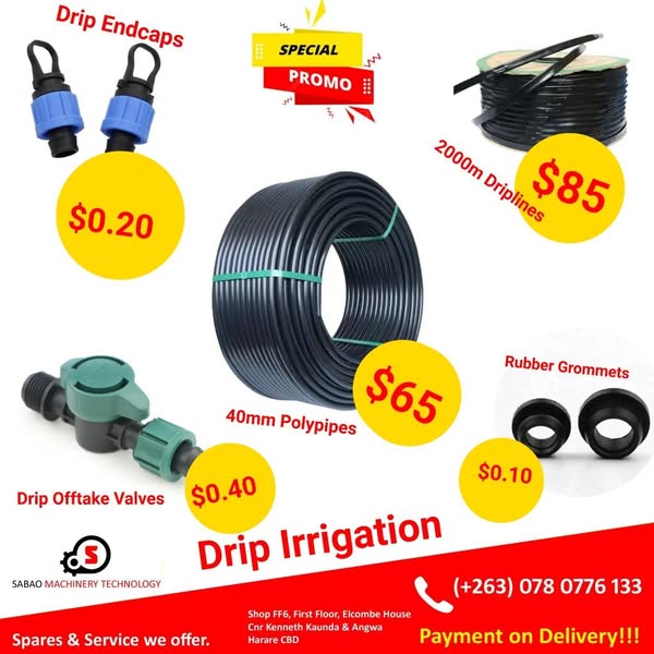 🇿🇼 Talking about Irrigation??? We have got you covered. Drip Irrigation, Rain pipes spray tubes, sprinklers, Rain Guns & Water Pumps are readily available in stock.