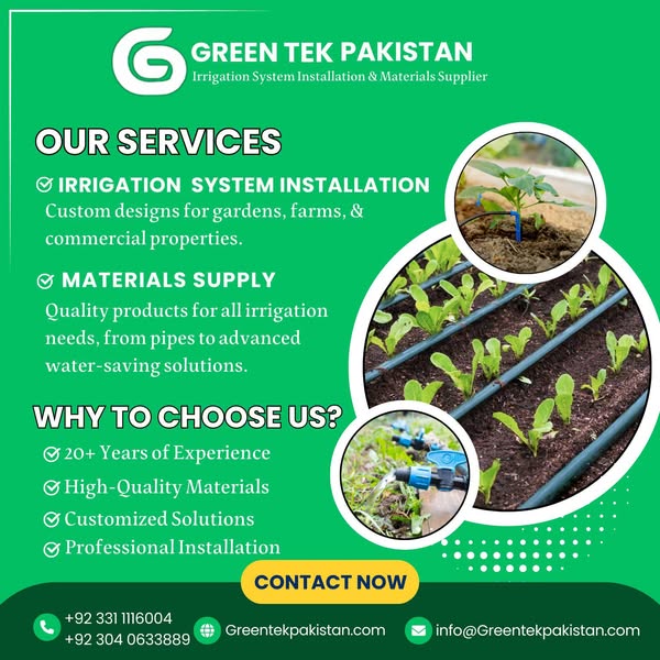ڈرپ ایریگیشن کا مکمل سامان خریدنے کے لیے آج ہی رابطہ کریں ۔ سامان کی ڈیلیوری پورے پاکستان میں کی جاتی ہے ۔