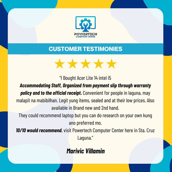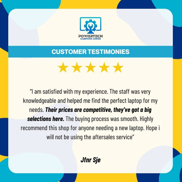 At Powertech Computer Center Laguna, we take pride in being the #1 trusted computer store in the area! 🏆 Whether it's repairing your devices, or providing brand new and 2nd hand laptops and printers, our customers' satisfaction is our top priority.