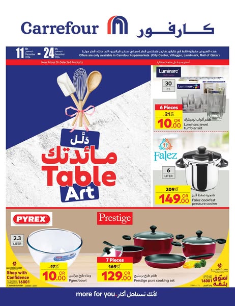 搜索关键词 Carrefour Qatar, Kitchenware, Home collection, Online shopping, Hypermarket, December deals, Table art, Cooking essentials, Home decor, Qatar promotions优势 Wide selection of kitchen and home products,Convenient shopping options (online and in-store),Availability at Carrefour Hypermarkets,Limited-time offer (until December 24th)