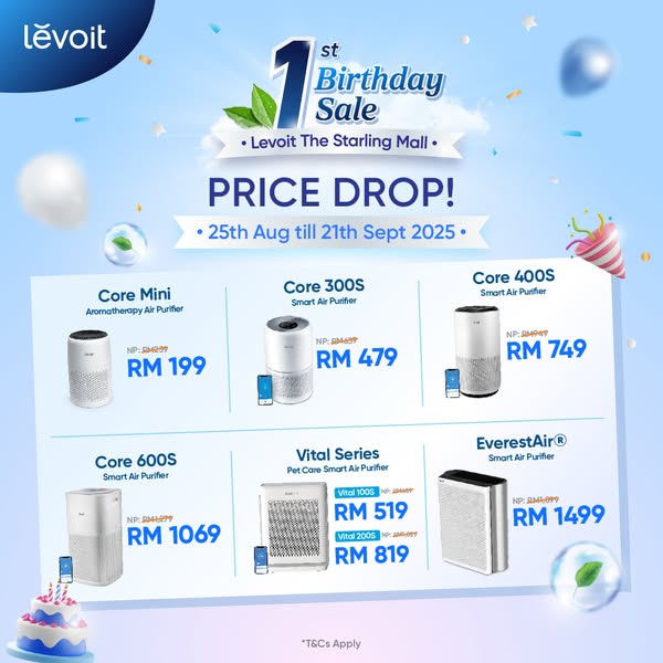 搜索关键词 Levoit air purifier, air purifier sale, birthday sale, The Starling Mall, free gifts, lucky draw, air quality, Levoit MY, health and wellness, limited time offer优势 Price Drop,Free Gifts,Lucky Draw