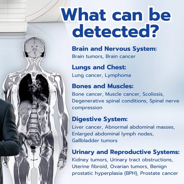💪 If you want to stay ahead of potential health issues before symptoms appear, the MRI Whole Body Scan is the ideal choice for proactive health monitoring.