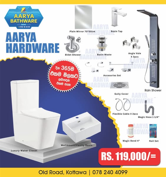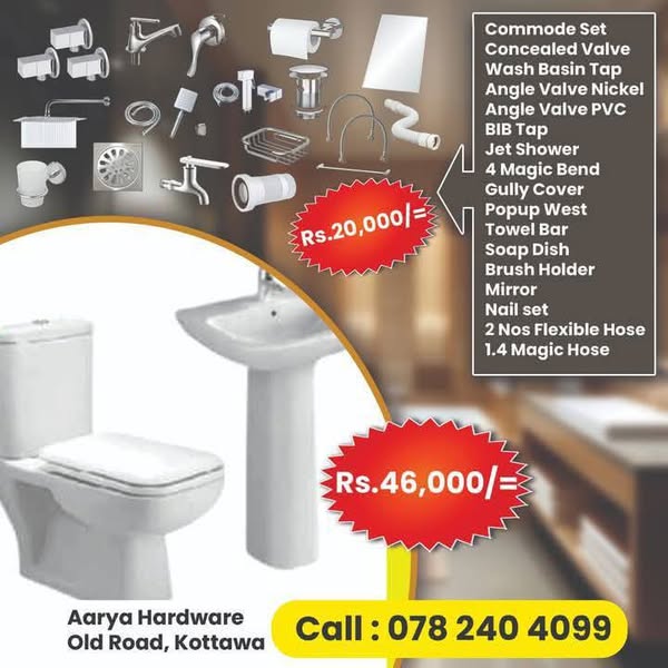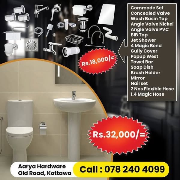 搜索关键词 bathroom accessories, bathroom fittings, Sri Lanka, Kottawa, cash on delivery, home improvement, island-wide delivery, Aarya Hardware, constant price, holiday season优势 Consistent pricing regardless of season,Wide range of bathroom accessories available,Island-wide delivery,Cash on delivery available,Easy access from the highway near Kottawa