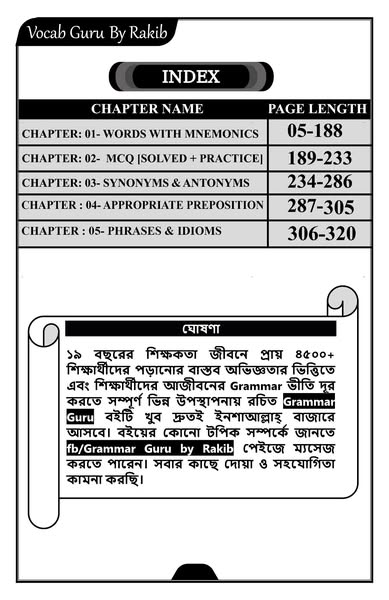 Vocabulary জগতে সাড়া জাগানো এই ব্যতিক্রম ও প্রয়োজনীয় Vocab Guru by Rakib বইটি আপনিও সংগ্রহ করতে পারেন।