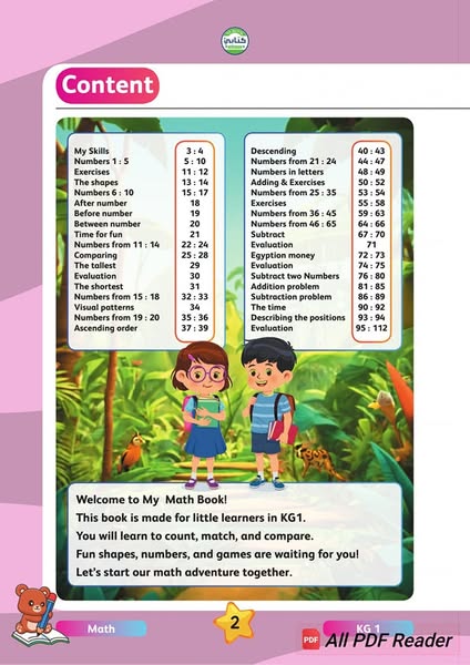搜索关键词 KG1 math book, children's math, fun math learning, my book in math, اشراف تجاريه, learning number, math for child优势 Specifically designed for KG1 children,Simple and enjoyable learning,Comprehensive math fundamentals,Fun and engaging activities