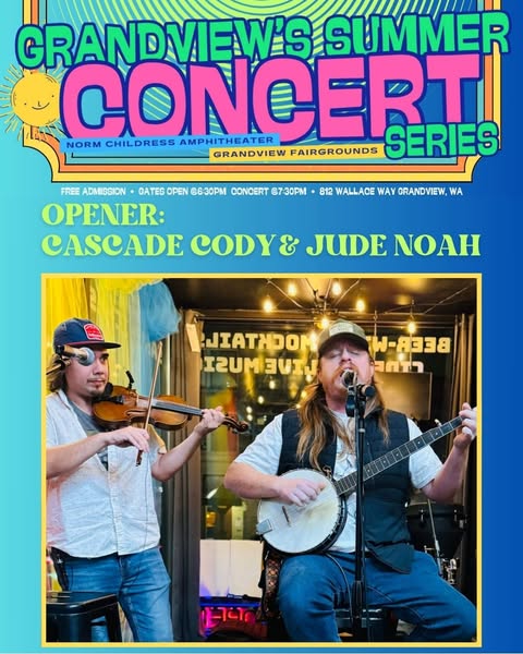 搜索关键词 grandview concert series, summer live music, free concert, captain colin, cascade cody, family entertainment, live music grandview, washington state music, outdoor concert, norm childress amphitheater优势 Free Admission,Variety of Music,Family Friendly,Outdoor Setting