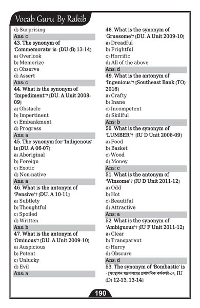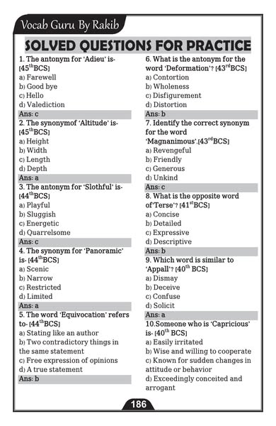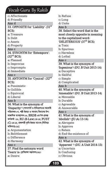 যেকোনো পরীক্ষায় ভালো করতে হলে vocabulary, synonym, antonym এর বিকল্প নেই! তাই অল্প সময়ে দ্রুত vocabulary শিখতে Vocab Guru by Rakib বইটি আপনার সেরা investment হবে ইন শা আল্লাহ।