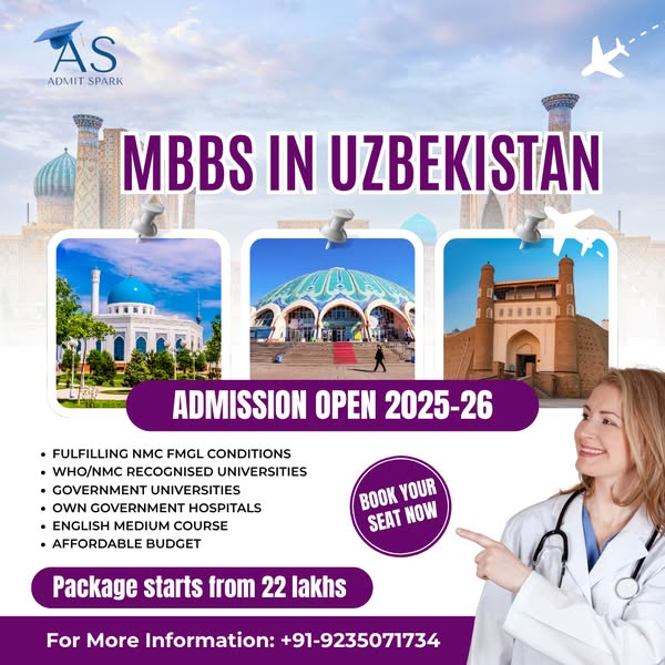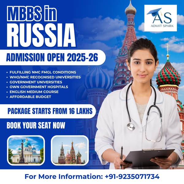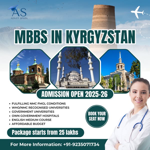 Want to Study MBBS Abroad? 🌍 Your Best Option is MBBS in Kyrgyzstan! 🎓 High-Quality Medical Education at a Pocket-Friendly Price ✅ 100% English Medium Course ✅ WHO & NMC Recognized Government Universities ✅ Compliant with NMC/FMGL Guidelines ✅ Clinical Exposure in Own Government Hospitals 💸 Complete Packages Starting from Just ₹25 Lakhs 🏥 Trusted by Thousands of Indian Students | Safe & Student-Friendly Environment 🎯 Limited Seats – High Demand – Don’t Miss Out! 🆓 Book Your FREE Counselling Today!