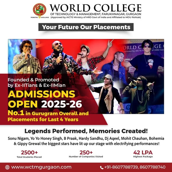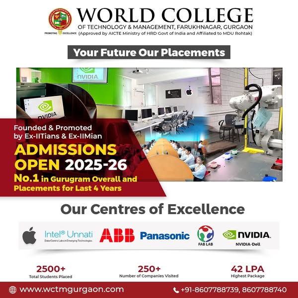 5. Launch Your IT Career with WCTM! No.1 in Placements in Gurgaon, 2500+ Industry Tie-ups, and leading IT job offers, enhanced by cutting-edge learning at our exclusive Apple Lab, Intel Lab, NVIDIA Dell Lab, and ABB Robotics Arm. Admission Open 2025-26.