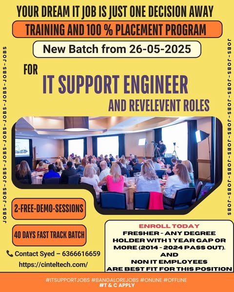 搜索关键词 IT support training, desktop support jobs, service desk career, IT placement Bangalore, real-time work exposure, IT training fresher jobs, IT career gap, MNC client jobs, soft skills development, IT job opportunities优势 Training with Real-time Work Experience,Soft Skills Development,Placement Assistance with MNCs,Welcomes Freshers and Career Gap Candidates