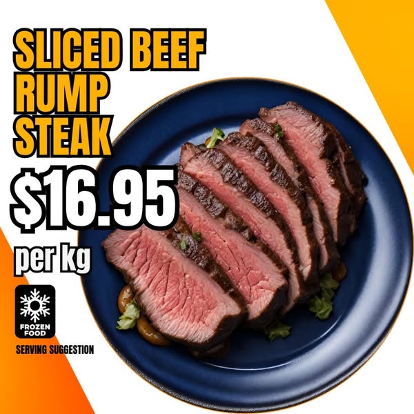 🍖 Sliced Beef Rump Steak - just $16.95/kg
