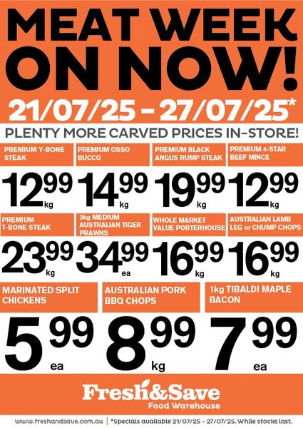 Specials available 21/07/25 - 27/07/25. While stocks last. Limits may apply. No trade supplied.