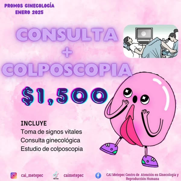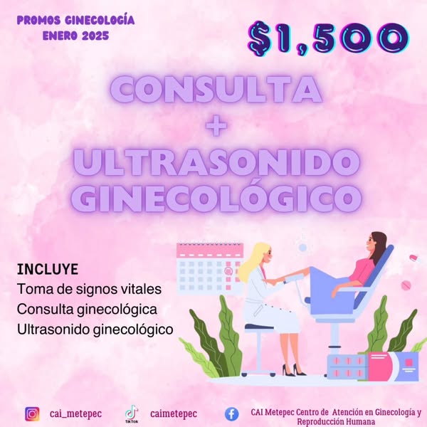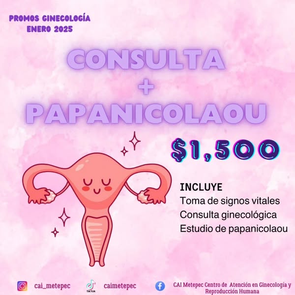 Recuerda que puedes solicitar cualquiera de los servicios promocionados en esta publicación (consulta de especialista, consulta + papanicolau, consulta + colposcopia, consulta ginecologica + ultrasonido y consulta de embarazo + ultrasonido)