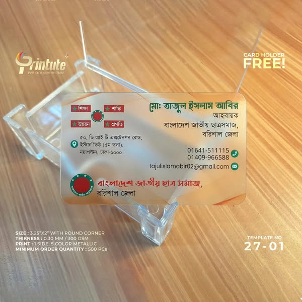 🎉ট্রান্সপারেন্ট বিজনেস কার্ড, সাথে কার্ড হোল্ডার ফ্রী!