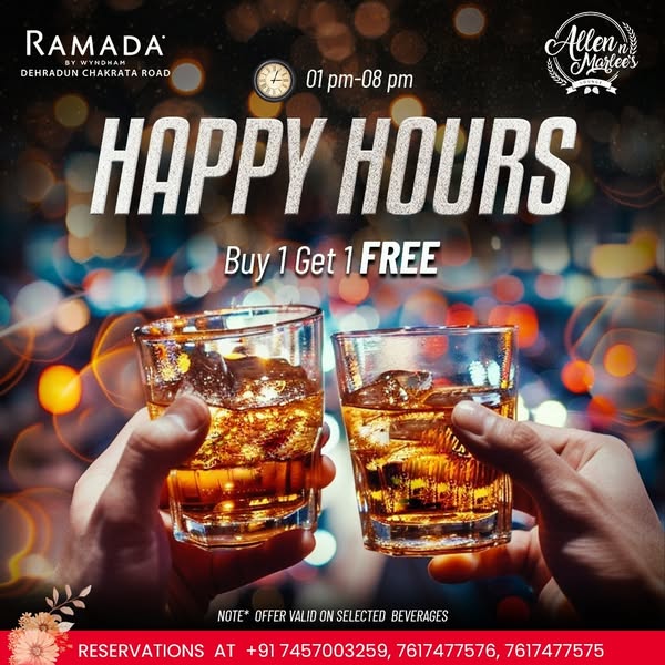 Cheers to double the fun! Enjoy Buy 1 Get 1 Free on your favorite drinks during Happy Hours.