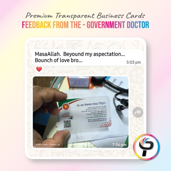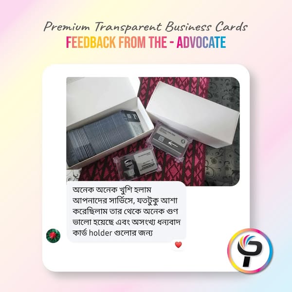 আপনার পরিচিতি কি সবাই মনে রাখছে? আমাদের প্রিমিয়াম ট্রান্সপারেন্ট বিজনেস কার্ডে আপনার ব্র্যান্ড পাবে এক অন্যরকম গুরুত্ব।