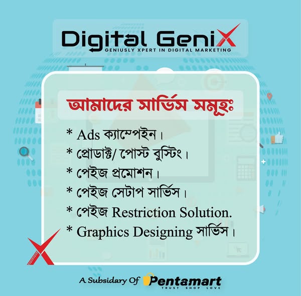 搜索关键词 digital marketing services, ad campaign management, facebook boosting, small business promotion, targeted advertising, Bangladesh marketing, Digital GeniX, PentaMart services, affordable advertisement, social media marketing优势 Targeted customer reach,Trusted partner with proven track record,Affordable solutions for small businesses,Focus on seller satisfaction and business growth