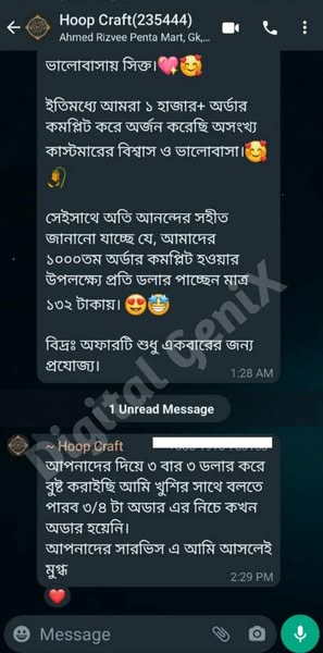 তাছাড়াও ক্ষুদ্র উদ্যোক্তা যারা নতুন বিজনেস শুরু করেছে, যাদের প্রোমোশন এর জন্য তেমন কোন বাজেট নেই তাদেরকে খুব অল্প খরচে সর্বোচ্চ সংখ্যক কাস্টমার এনে দেওয়া আমাদের আরেকটি অন্যতম মূল লক্ষ্য। 🥰🥰❤️❤️