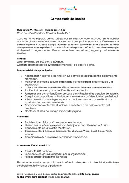 Casa de Niños Popular en Carolina, PR está en búsqueda de una