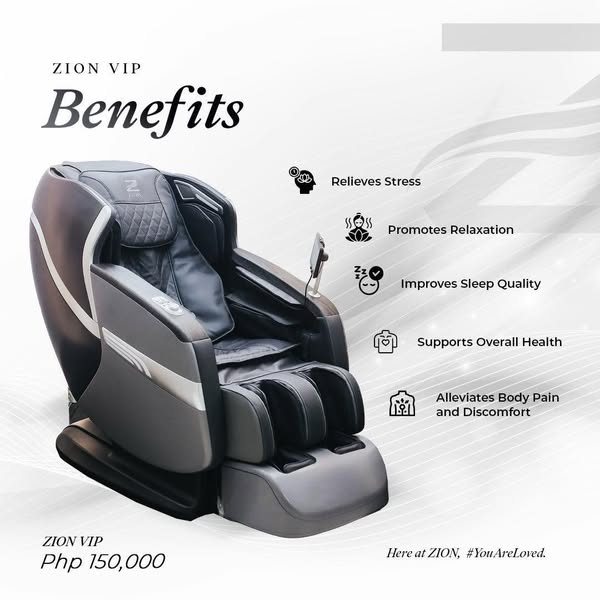 ZION is a trusted wellness brand, celebrity-approved for its innovative and premium-quality massage chairs, designed to support your health and well-being anytime. Get your own ZION today and experience the same relaxation trusted by our thousand clients!