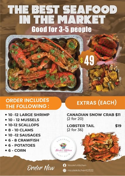 搜索关键词 Jacksonville seafood, seafood boil, family seafood, Nicole's Kitchen, best seafood market, Aloha seafood, sunshine state seafood, crawfish seafood, lobster seafood, seafood delivery优势 Large portions for sharing,Variety of seafood,Family-owned business,Convenient payment options