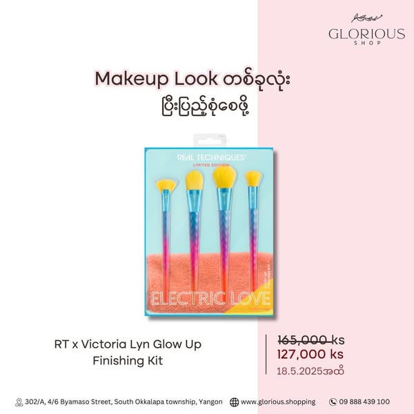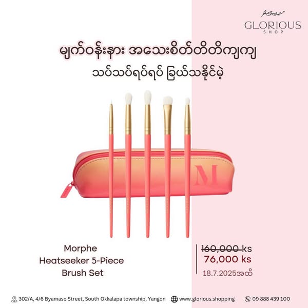 搜索关键词 Makeup Brushes Sale, Professional MUA, Authentic Cosmetics, Myanmar Makeup, Yangon Cosmetics, Glorious Myanmar, Limited Time Offer, Original Brand Invoice, Quality Guaranteed, Cosmetics Delivery优势 Sale for Professional MUA,Good quality products,In-stock, no waiting,Authentic products, long expiry date,Original Official Brand invoice available,Delivery available